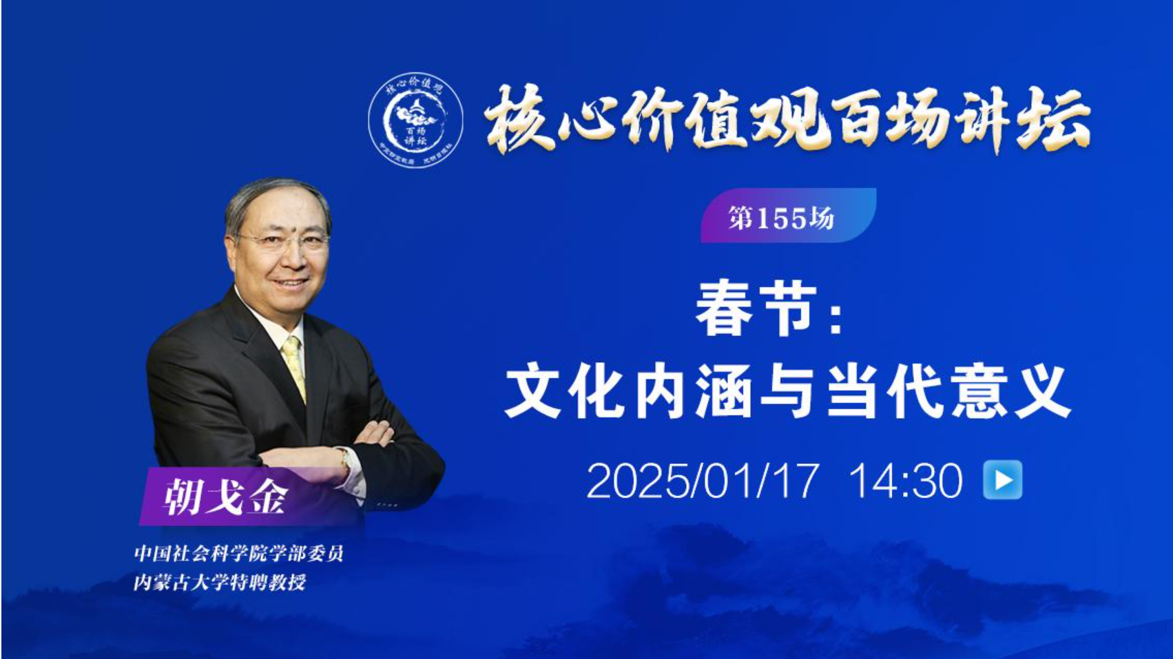 新华社北京1月17日电(记者 孙蕾)由中宣部宣教局、光明日报社共同主办的“核心价值观百场讲坛”第155场活动1月17日在中国非物质文化遗产馆举行。中国社会科学院学部委员、内蒙古大学特聘教授朝戈金作题为《春节:文化内涵与当代意义》的演讲。