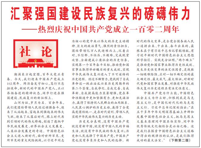 潮涌东方起宏图,百年大党正青春。今天,我们迎来中国共产党成立102周年。踔厉奋发守初心,笃行不怠担使命,新时代的中国共产党人,正以昂扬奋进的精神状态,阔步行进在强国建设、民族复兴的新征程上。