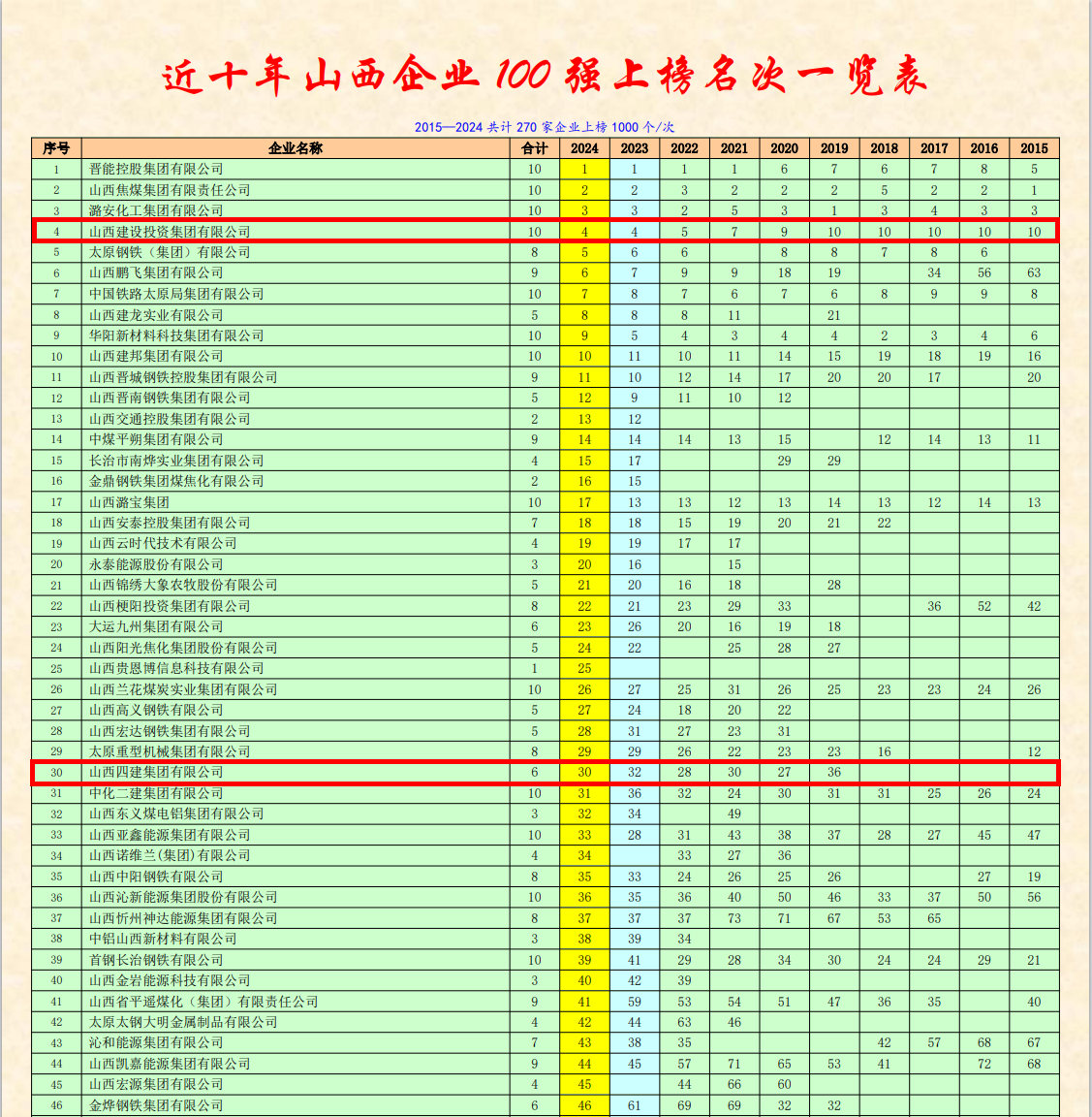 11月22日,山西省企业联合会、山西省企业家协会召开以“弘扬企业家精神,培育发展新质生产力”为主题的山西企联第32次年会暨2024年山西100强企业发布会。山西建投四建集团凭借坚实发展荣列2024年山西企业100强排行榜第30位(较去年上升2位),连续6年入围百强榜单,并荣获“2023年度功勋企业”称号。