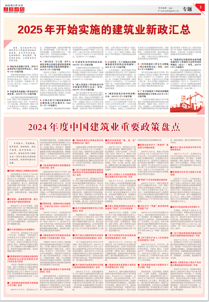 乡村振兴、节能降碳、城市更新、招标投标、房地产融资、城中村改造……2024年,国家政府部门相继出台一系列与建筑业密切相关的政策,深刻影响着行业发展。