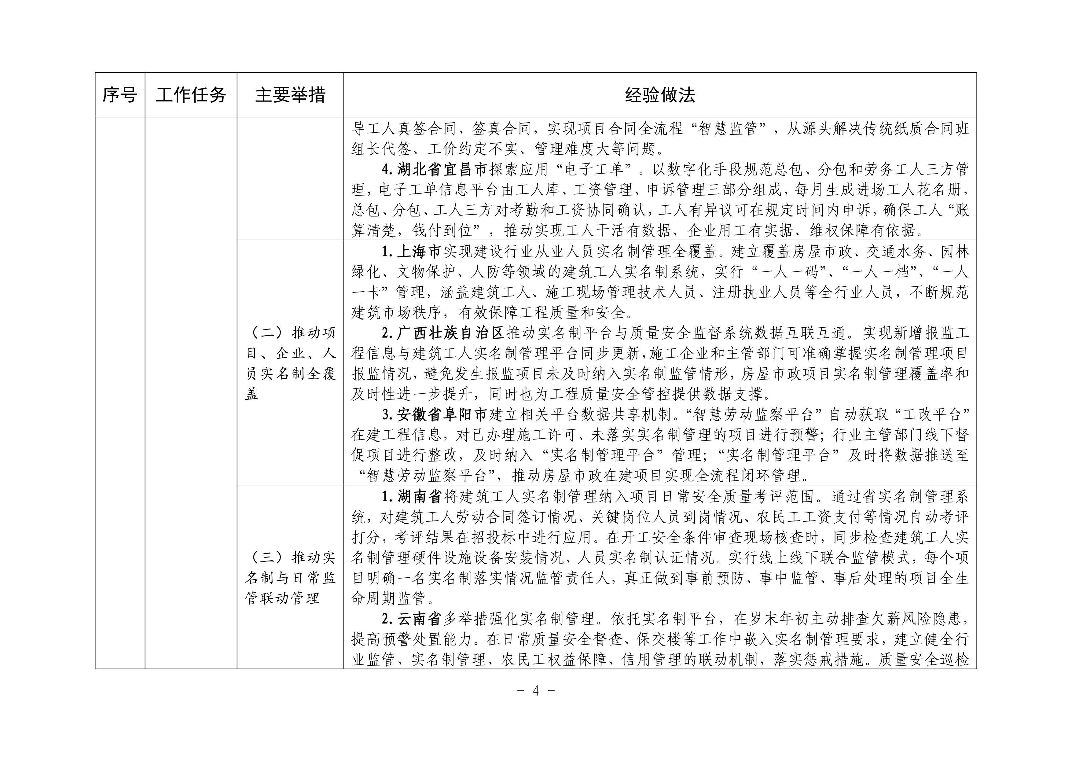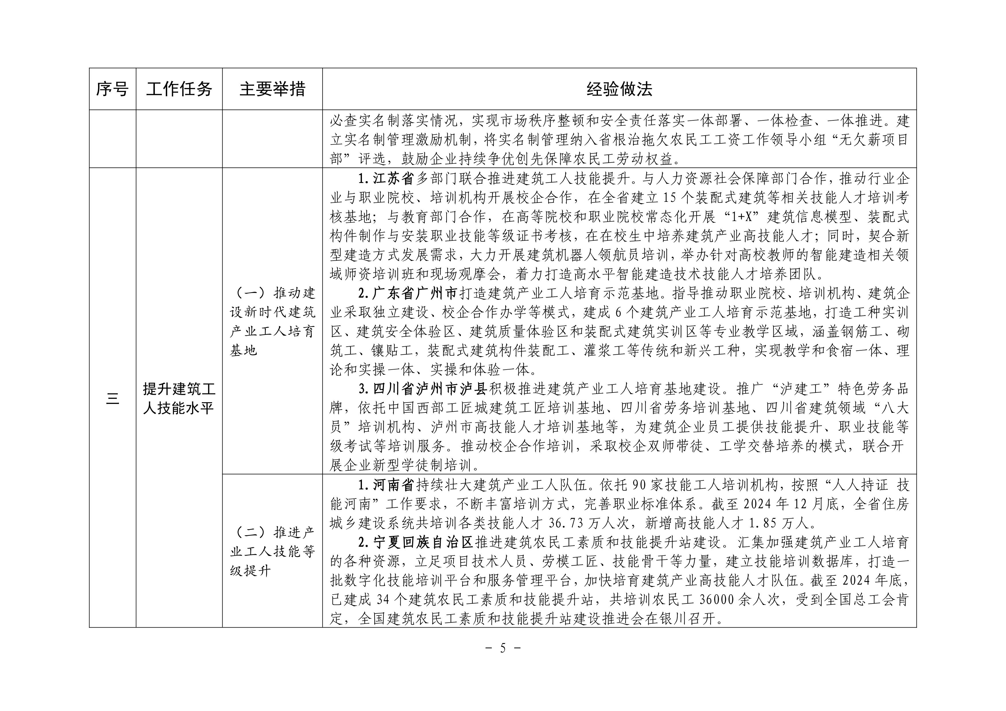 按照住房城乡建设部等部门《关于加快培育新时代建筑产业工人队伍的指导意见》(建市〔2020〕105 号)要求,各地围绕推进建筑农民工向新时代建筑产业工人转型、完善建筑工人实名制管理、提升建筑工人技能水平、加强统筹协作和政策支持、保障建筑工人合法权益等方面,积极探索、大力推进建筑产业工人队伍建设,取得了积极成效。现将有关经验做法印发给你们,请结合实际学习借鉴。