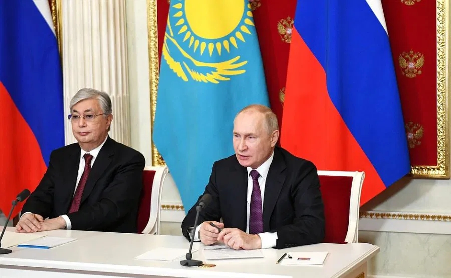 哈萨克总统托卡耶夫(左)和俄罗斯总统普京 克里姆林宫官网