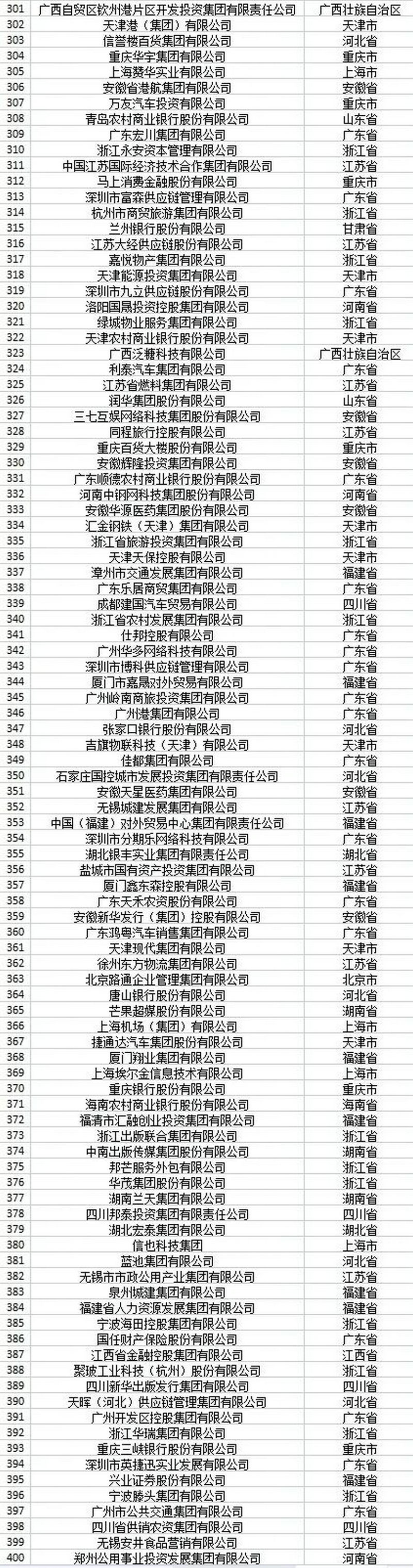 位列榜单前10位的企业分别是:国家电网有限公司、中国工商银行股份有限公司、中国农业银行股份有限公司、中国建设银行股份有限公司、中国银行股份有限公司、京东集团股份有限公司、中国人寿保险(集团)公司、中国平安保险(集团)股份有限公司、中国移动通信集团有限公司和中国中信集团有限公司。