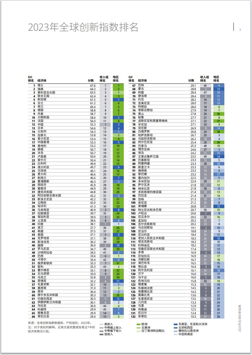 2023全球创新指数排名