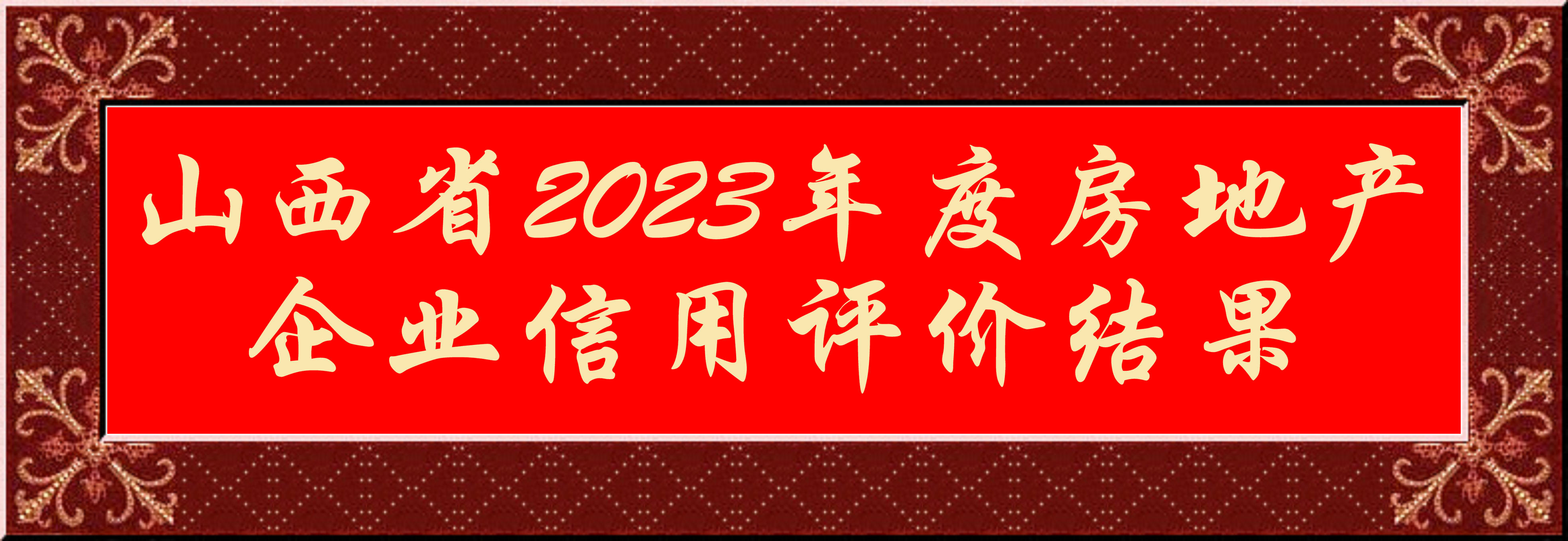 根据《山西省住房和城乡建设厅房地产企业信用评价管理办法》(晋建房规字〔2022〕156号)和《山西省住房和城乡建设厅关于开展2023年度房地产企业信用评价工作的通知》(晋建房函〔2023〕918号),我厅组织开展了2023年度房地产企业信用评价,现将评价结果予以公布。