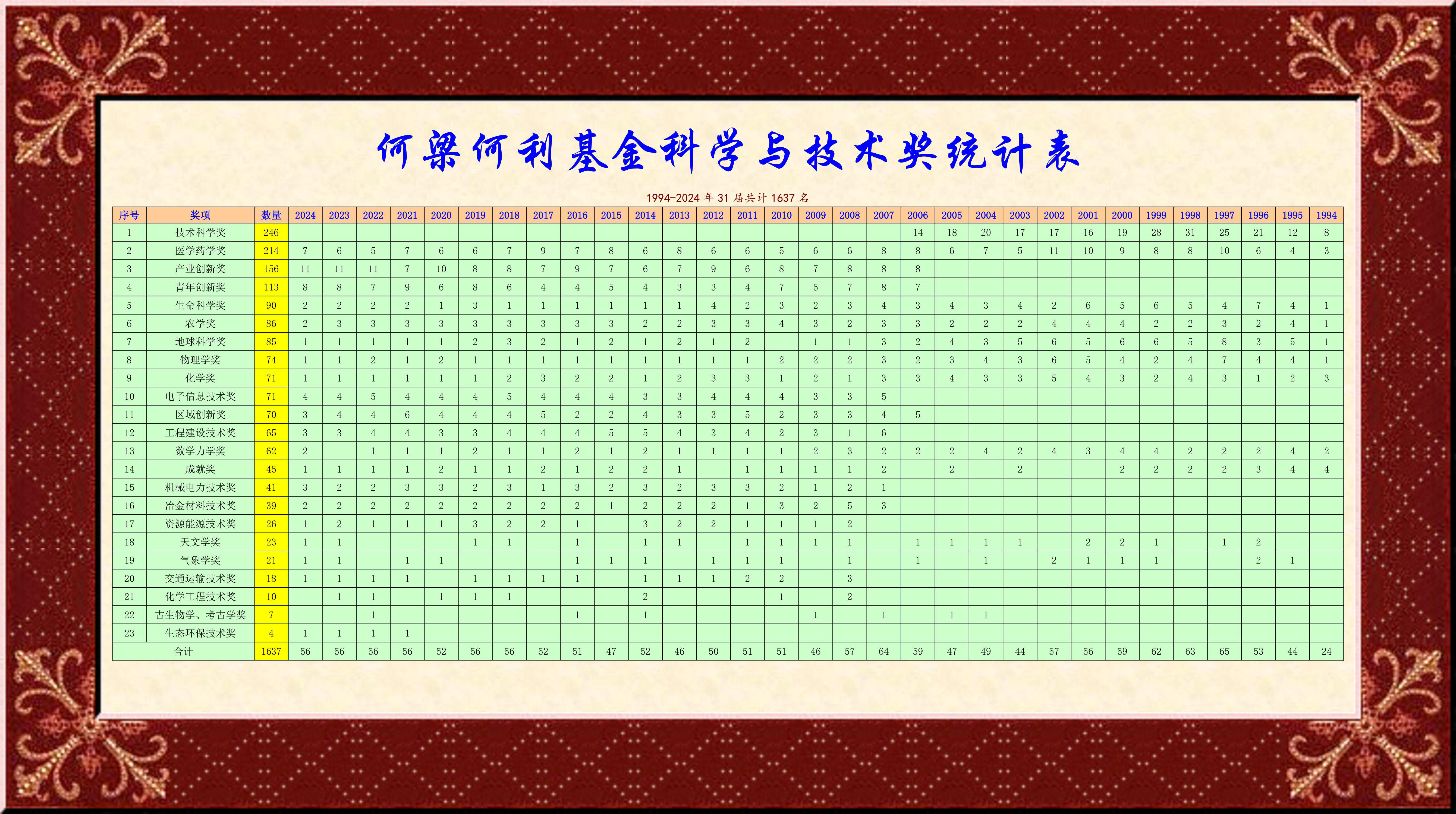 1994-2024何梁何利基金科学与技术奖全榜单1637名