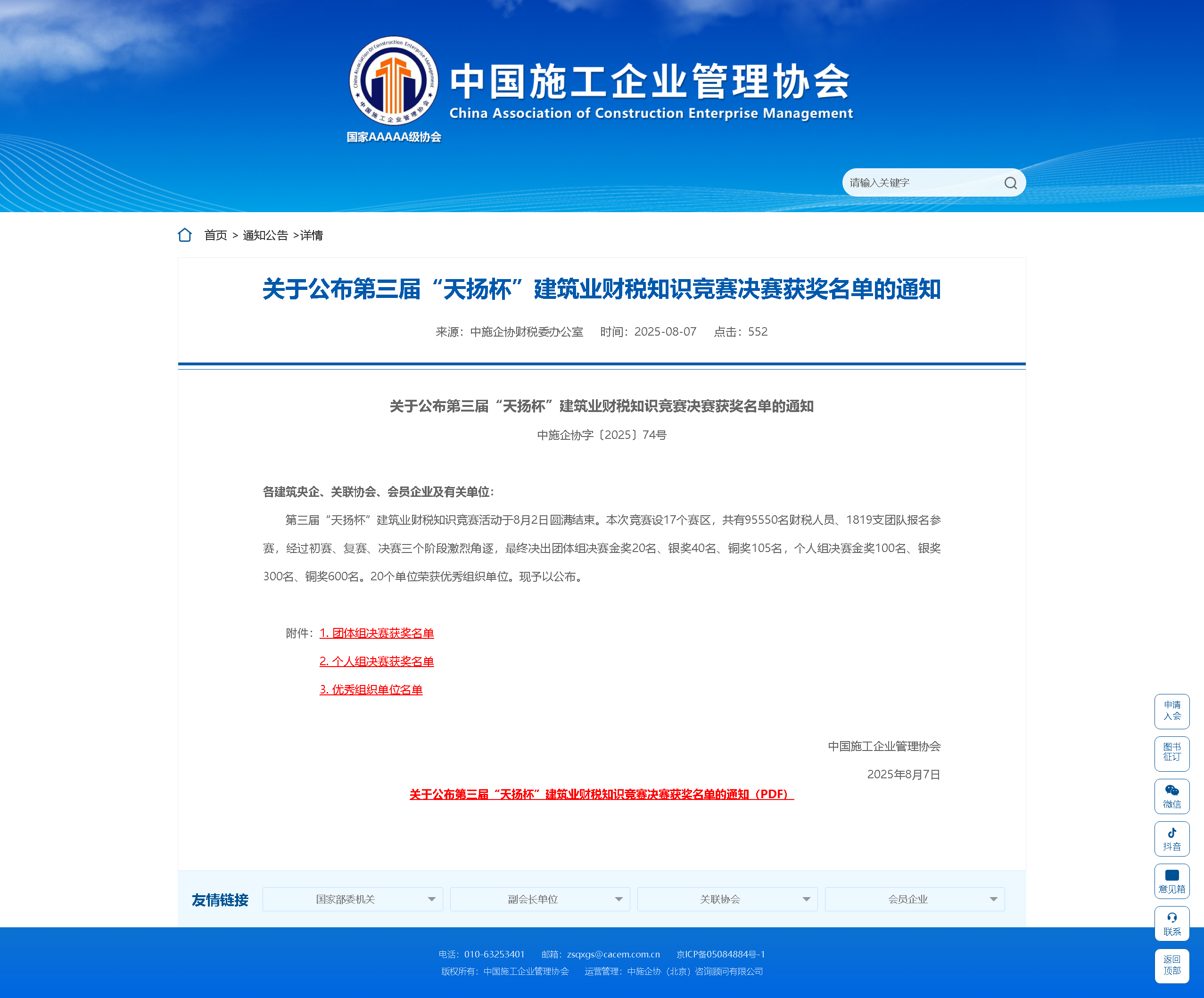 第三届“天扬杯”建筑业财税知识竞赛决赛获奖名单