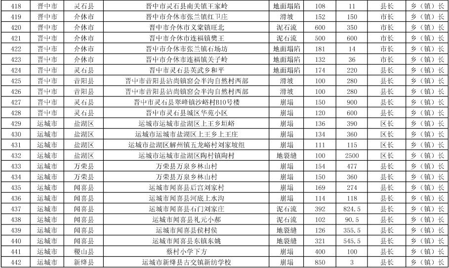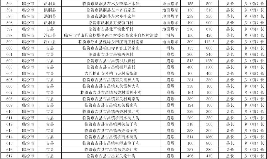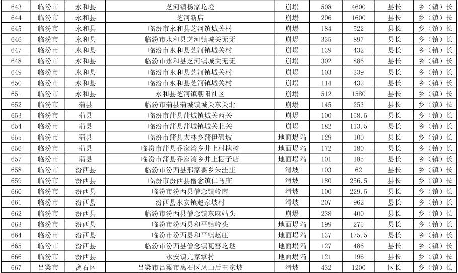 《方案》要求,强化治理搬迁,消除安全隐患。实施中央和省级资金安排9处地质灾害治理工程项目。其中,河津市、夏县、石楼县、临县、永和县、乡宁县、榆社县各1处,武乡县2处。《方案》提出,要把县级配套资金落实到位,加快项目施工进度,确保今年全部竣工;要推进中央和省级资金安排3397户农村地质灾害避险搬迁工作,落实市县配套资金,明确时间节点进度,确保年底全面开工,2024年竣工入住。