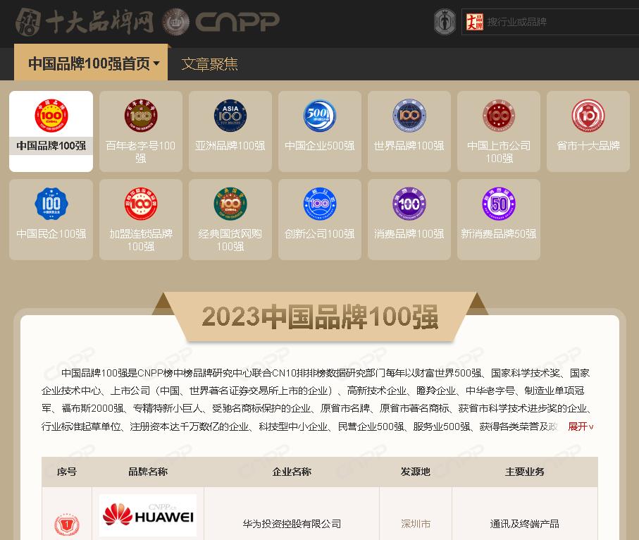 以上2023中国民企100强品牌榜名单由CN10/CNPP品牌数据研究部门通过资料收集整理大数据统计分析研究而得出,排序不分先后,仅提供给您参考。