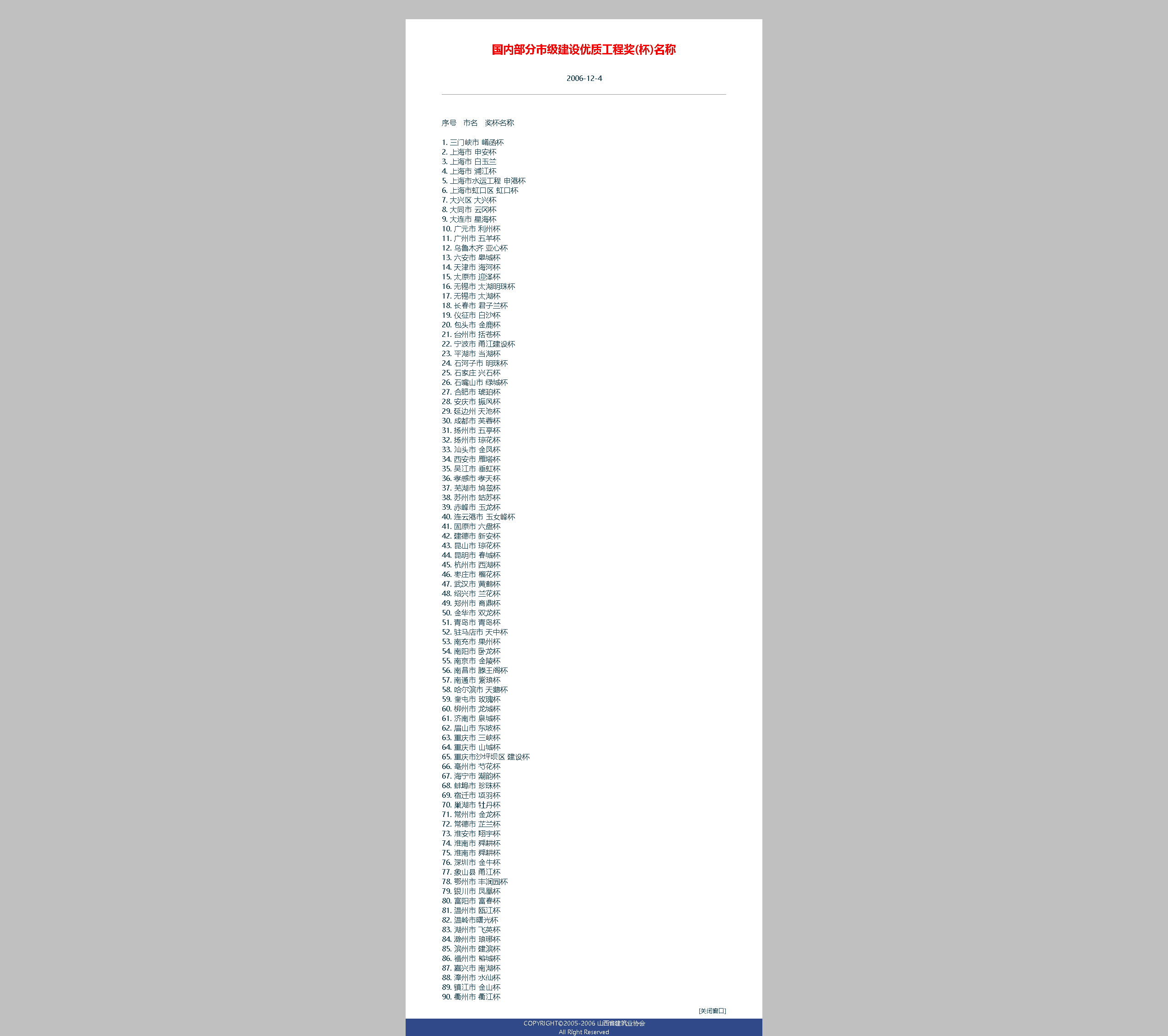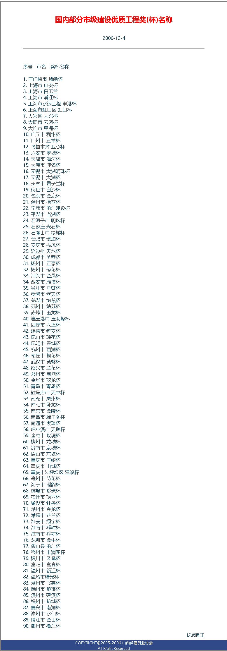 这是十七年前,在山西省建筑业协会管理网站时,收集的全国各地建筑业评奖名称,对于了解我们这个行业和社会的重视程度,管中窥豹,可见一斑。做企业,首先要知道和懂得瞄准战略目标,有的放矢,正中靶心。