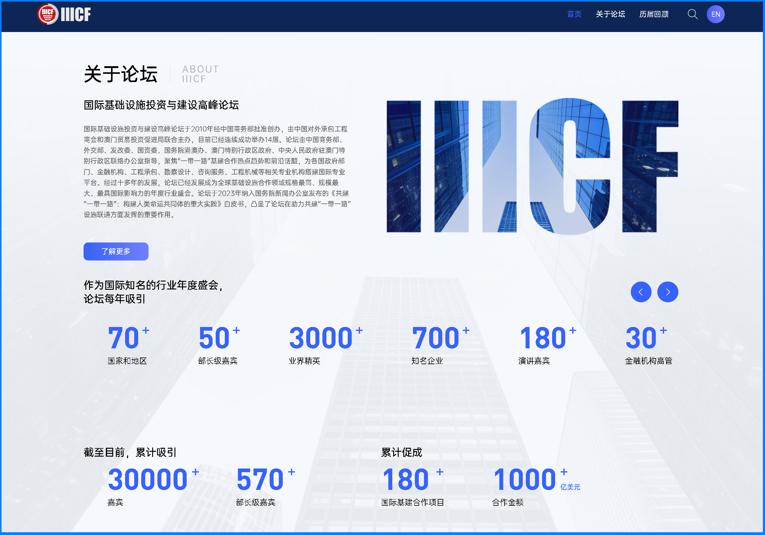 国际基础设施投资与建设高峰论坛于2010年经中国商务部批准创办,由中国对外承包工程商会和澳门贸易投资促进局联合主办,目前已经连续成功举办14届。论坛由中国商务部、外交部、发改委、国资委、国务院港澳办、澳门特别行政区政府、中央人民政府驻澳门特别行政区联络办公室指导,聚焦“一带一路”基建合作热点趋势和前沿话题,为各国政府部门、金融机构、工程承包、勘察设计、咨询服务、工程机械等相关专业机构搭建国际专业平台。经过十多年的发展,论坛已经发展成为全球基础设施合作领域规格最高、规模最大、最具国际影响力的年度行业盛会。论坛于2023年纳入国务院新闻办公室发布的《共建“一带一路”:构建人类命运共同体的重大实践》白皮书,凸显了论坛在助力共建“一带一路”设施联通方面发挥的重要作用。