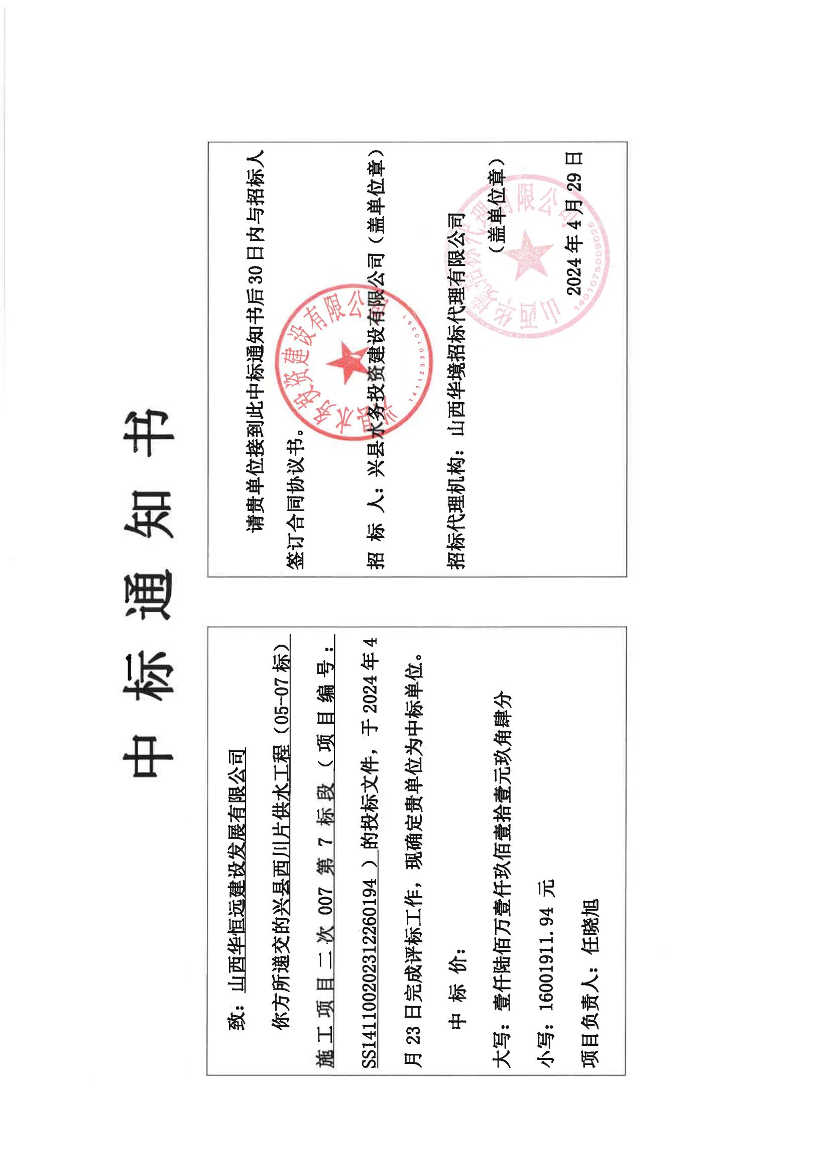 2024年兴县西川片供水工程(05-07 标)施工项目二次007第7标段