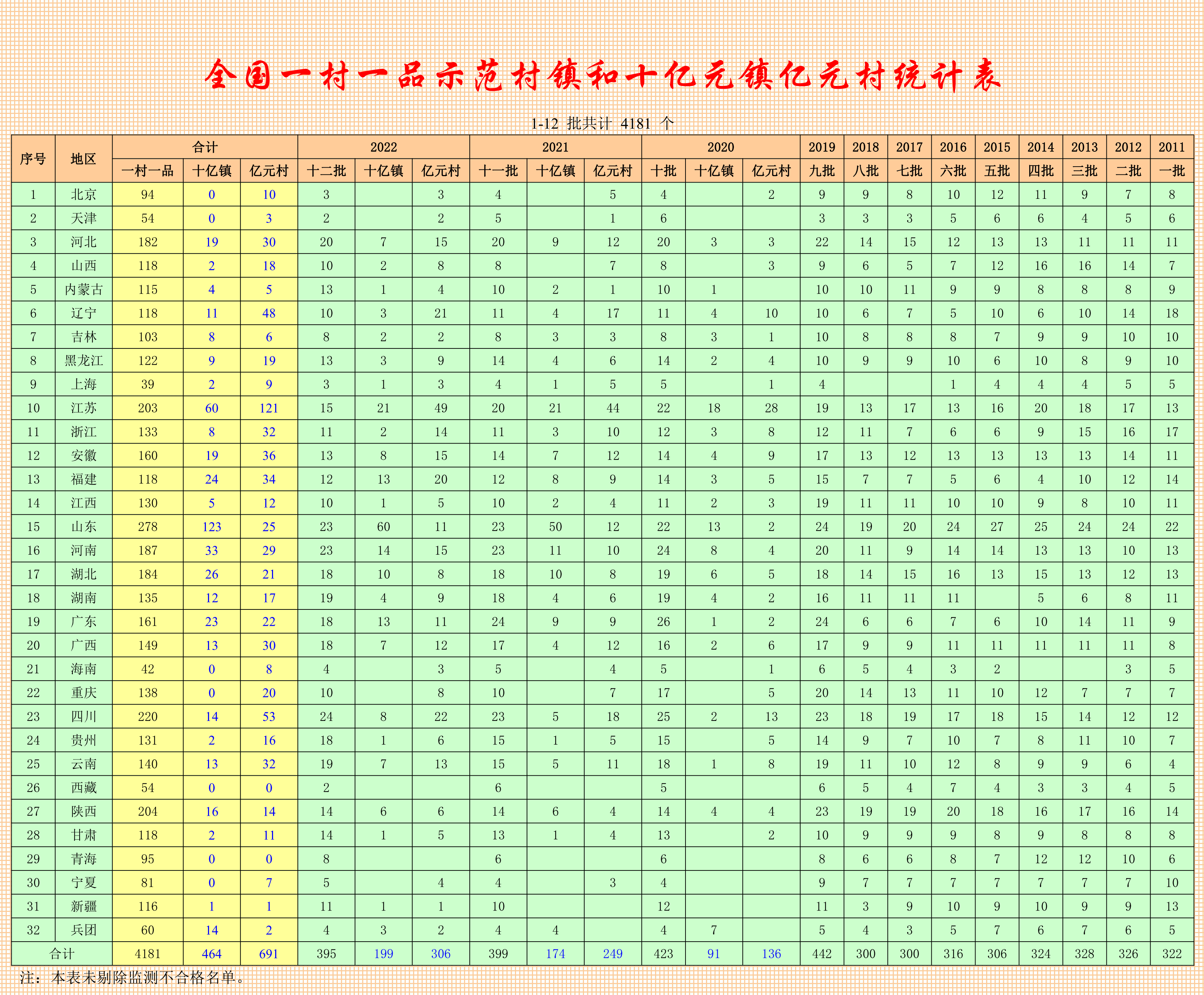 运城市临猗县庙上乡(冬枣)、临猗县北辛乡(苹果)入选2022年全国乡村特色产业产值超十亿元镇。2022年全国乡村特色产业产值超亿元村我省入选8个,分别为清徐县孟封镇杨房村(食醋)、阳泉市郊区平坦镇桃林沟村(休闲旅游)、晋城市阳城县北留镇皇城村(休闲旅游)、朔州市怀仁市海北头乡海子村(肉羊)、朔州市怀仁市亲和乡南小寨村(羔羊)、晋中市祁县赵镇里村(肉牛)、吕梁市文水县刘胡兰镇保贤村(肉牛)、吕梁市临县前安业乡青塘村(粽子)。