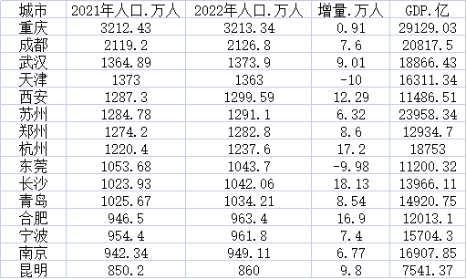根据第一财经记者梳理,2022年,15个新一线城市新增人口合计达到了109.49万人,成为人口增长的重点。