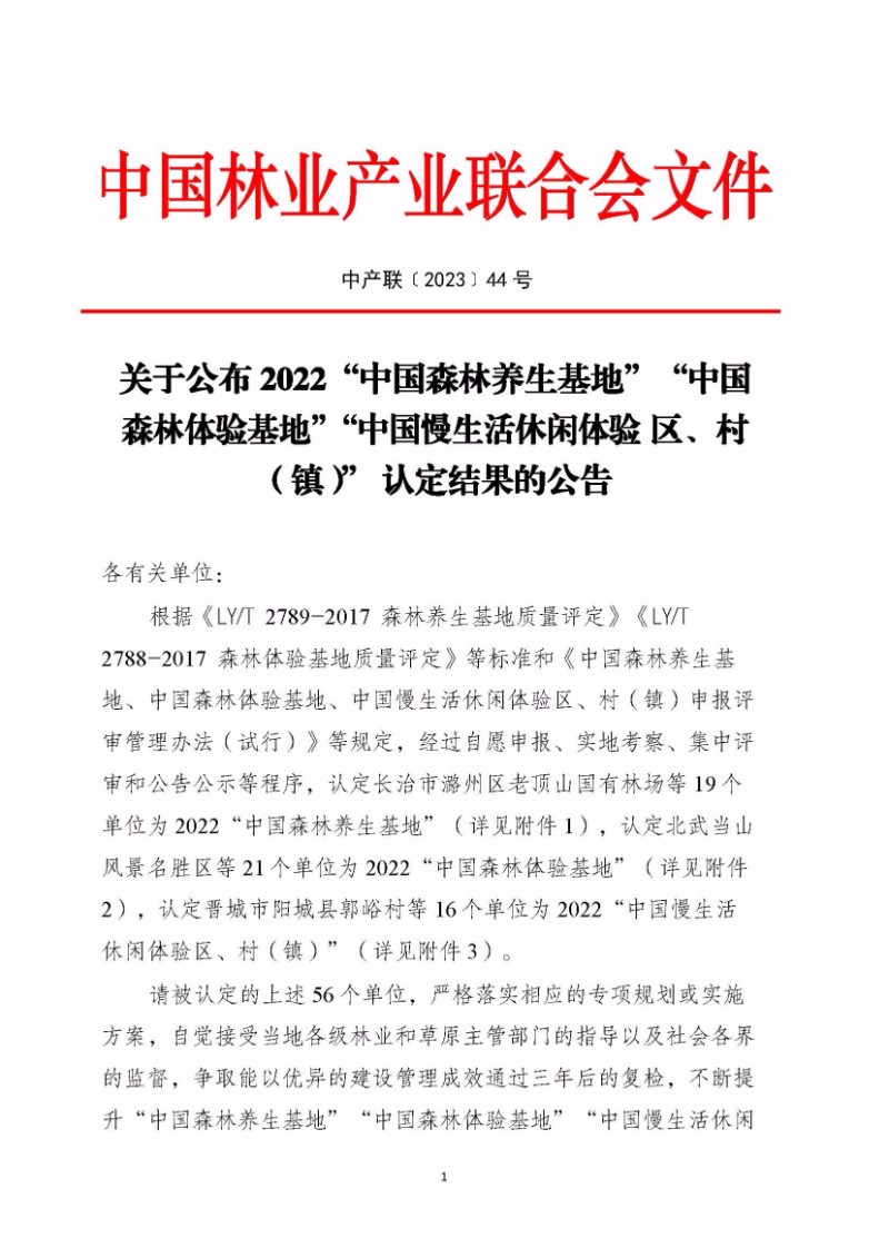7月10日,根据关于公布2022“中国森林养生基地”“中国森林体验基地”“中国慢生活休闲体验区、村(镇)”认定结果的公告,山西入选“两地一区”11处。目前,山西“两地一区”已达44处,超额完成“十四五”规划的全省认定40处“两地一区”任务指标。本次公告的山西“两地一区”具体名单如下: