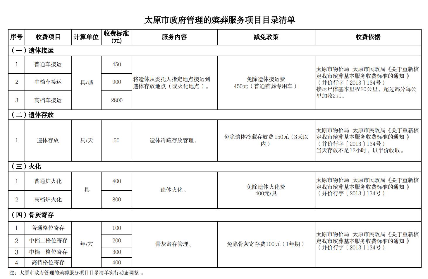 《太原市政府管理的殡葬服务项目目录清单》11月15日公布,涉及4项收费项目。