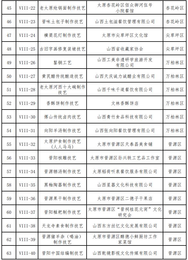 太原市第八批市级非物质文化遗产代表性项目名录