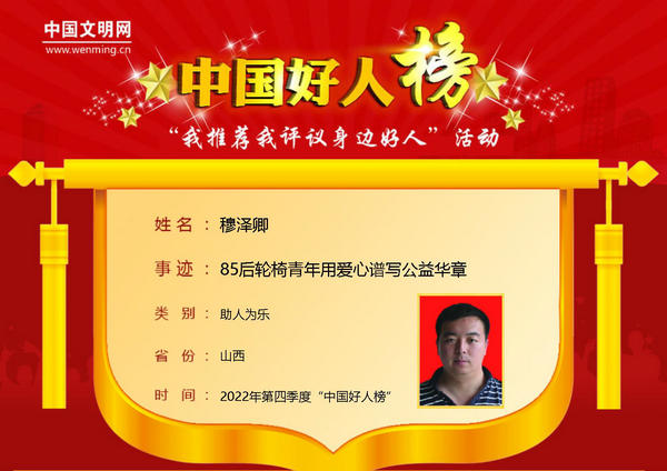 穆泽卿 山西晋中市 85后轮椅青年用爱心谱写公益华章