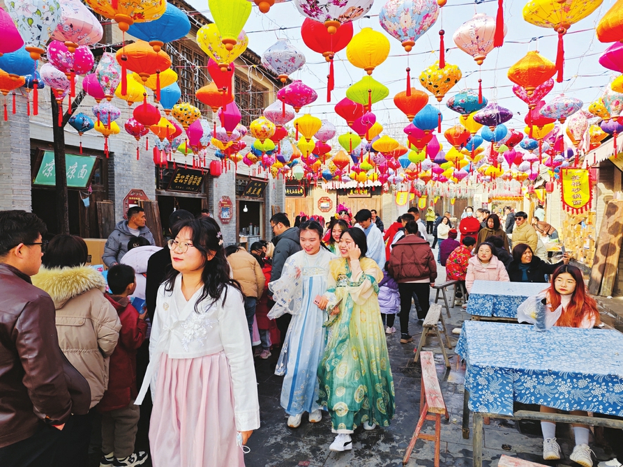 大年初一,游人穿梭于周仓文化园景区,沉浸式体验春节期间的别样快乐。(周明飞摄