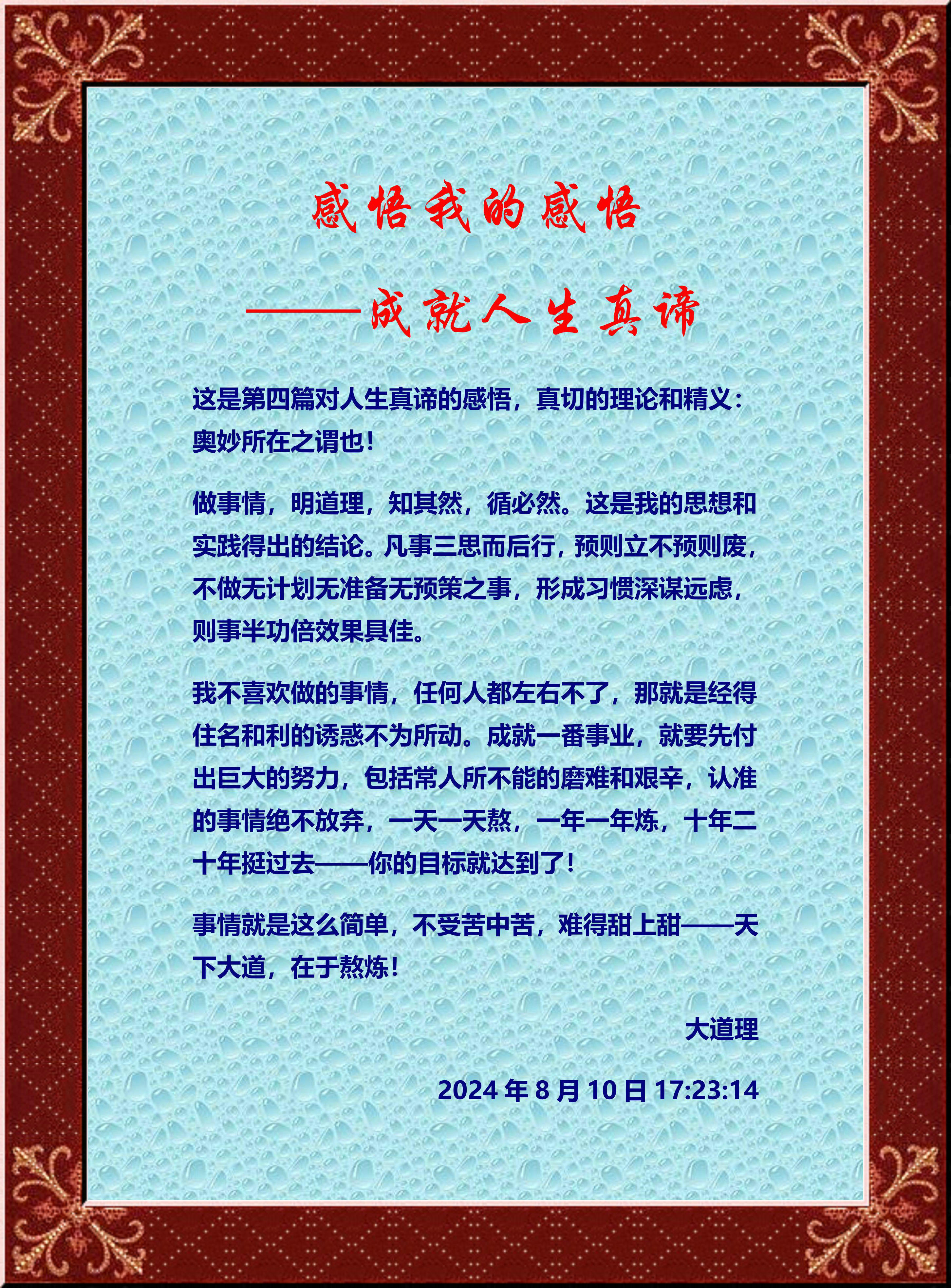 这是第四篇对人生真谛的感悟,真切的理论和精义:奥妙所在之谓也!