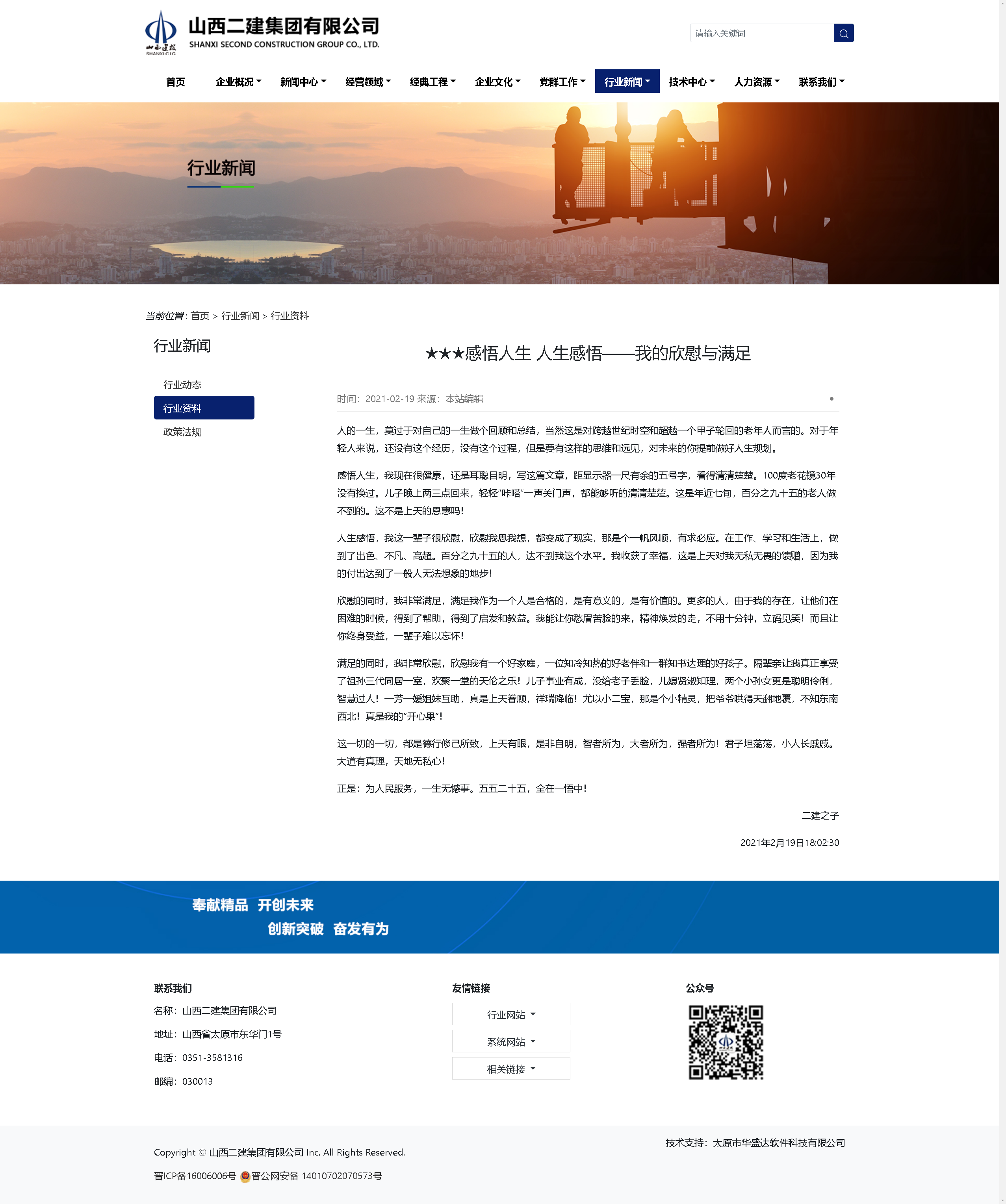 回顾以往,从18岁进入省建,四十年后的2011年担任山西省第二建筑工程公司总经理发展战略顾问,到2012年退休返聘,如今依然是在岗不在册的二建员工,这是我最看重和欣慰的第一件荣誉!从退休后第二年,又担任河南东方建设集团太原分公司和山西日月峰建筑工程有限公司总经理发展战略顾问,再到我亲自谋略的山西k1体育建设发展有限公司战略顾问,五十五年就是这样走过来的,普普通通,平平凡凡!
