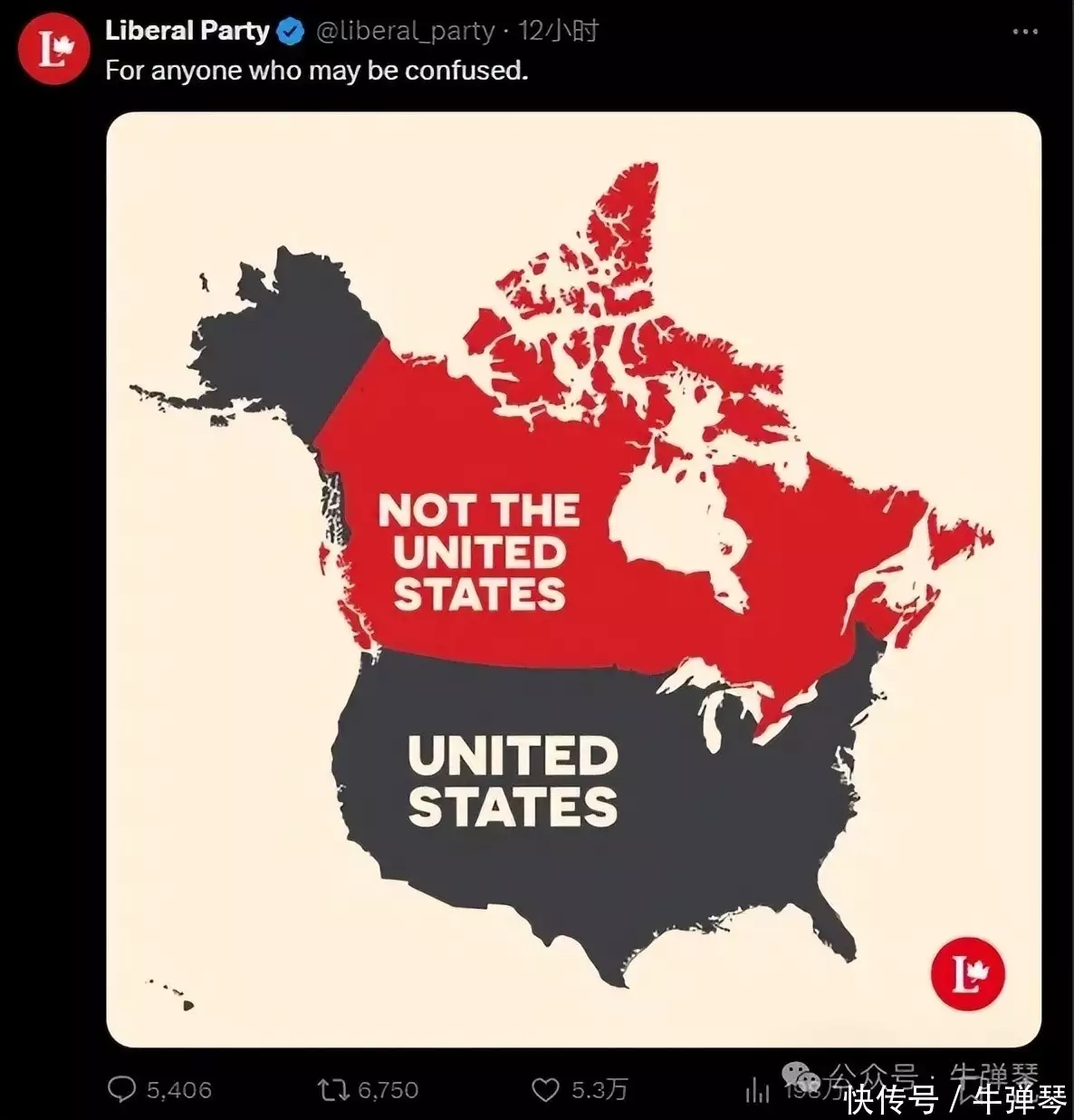 气得加拿大执政党自由党也贴出一张图。