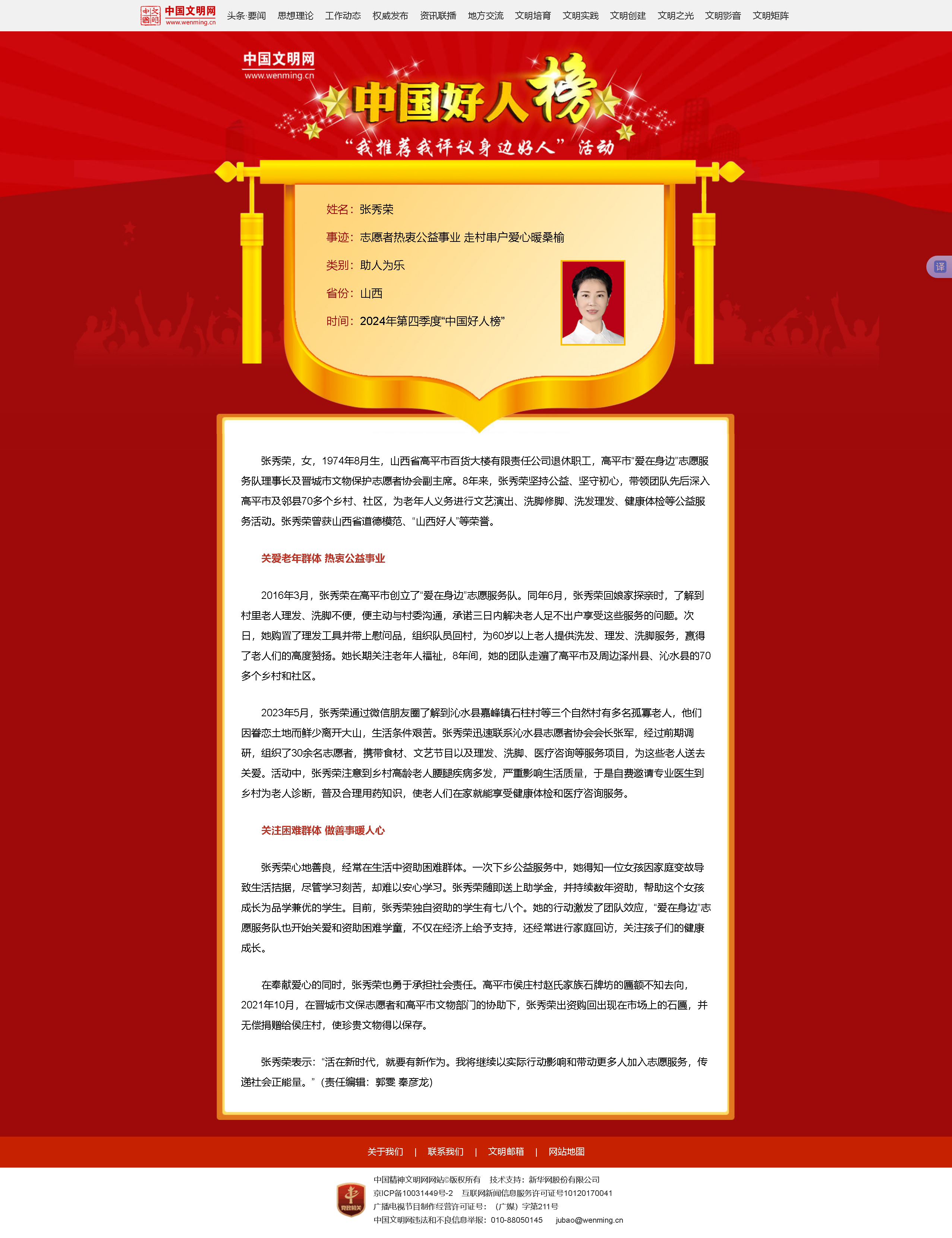 感悟2024年三季度中国好人榜——山西范潞霞和张秀荣光荣上榜