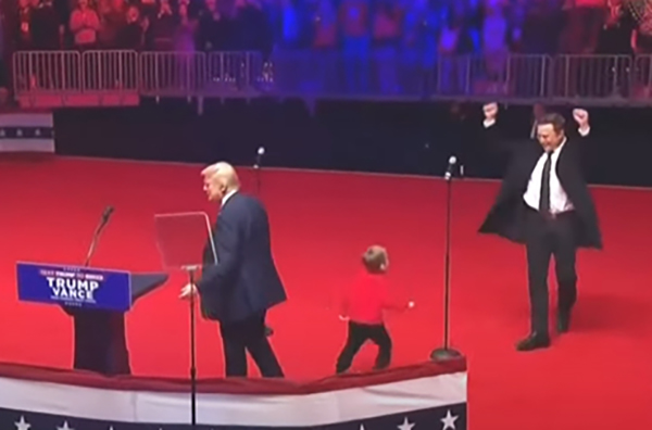 马斯克带着他的儿子X ? A-12参加特朗普集会。 视频截图