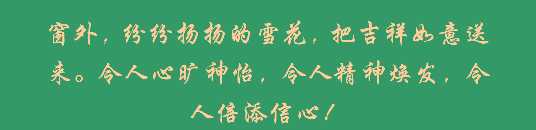 窗外,纷纷扬扬的雪花,把吉祥如意送来。令人心旷神怡,令人精神焕发,令人倍添信心!