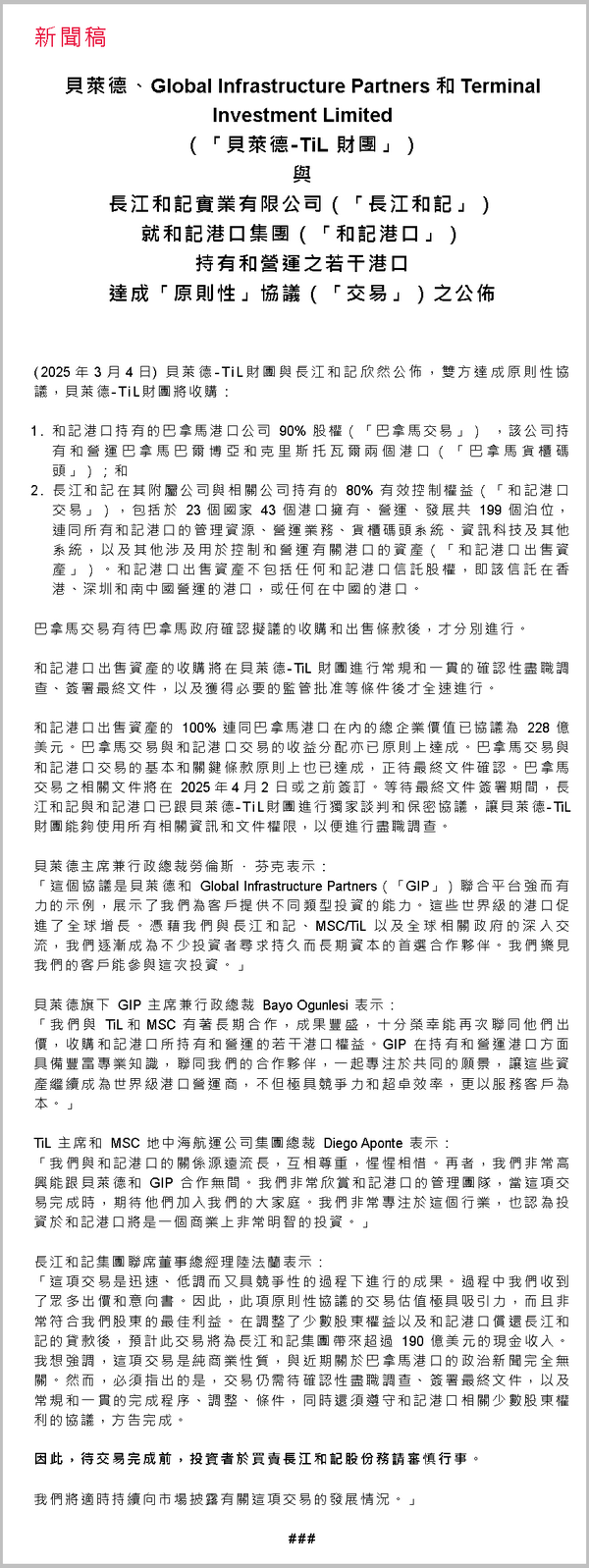 一个多月前,长和宣布与美国贝莱德牵头的财团达成港口出售原则性协议时,恐怕没想到会触发一场“舆论核爆”。