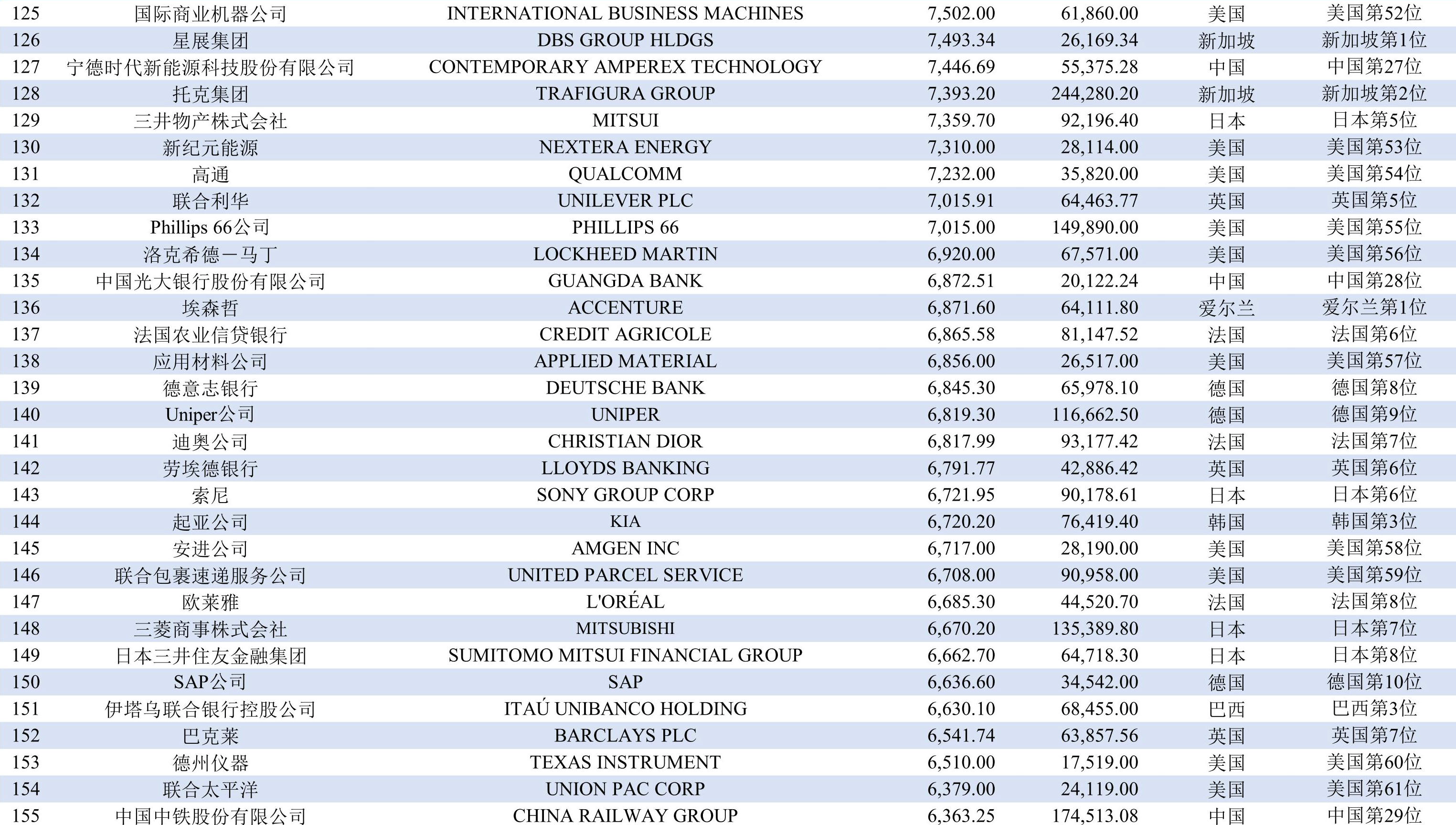 排在第九位的国家有三个,分别是澳大利亚、荷兰和印度,均有8家上榜企业;排在第十二位至第二十一位的国家分别是巴西、俄罗斯、韩国、西班牙、新加坡、意大利、爱尔兰、墨西哥、阿联酋、丹麦,均各有2-6家企业上榜。