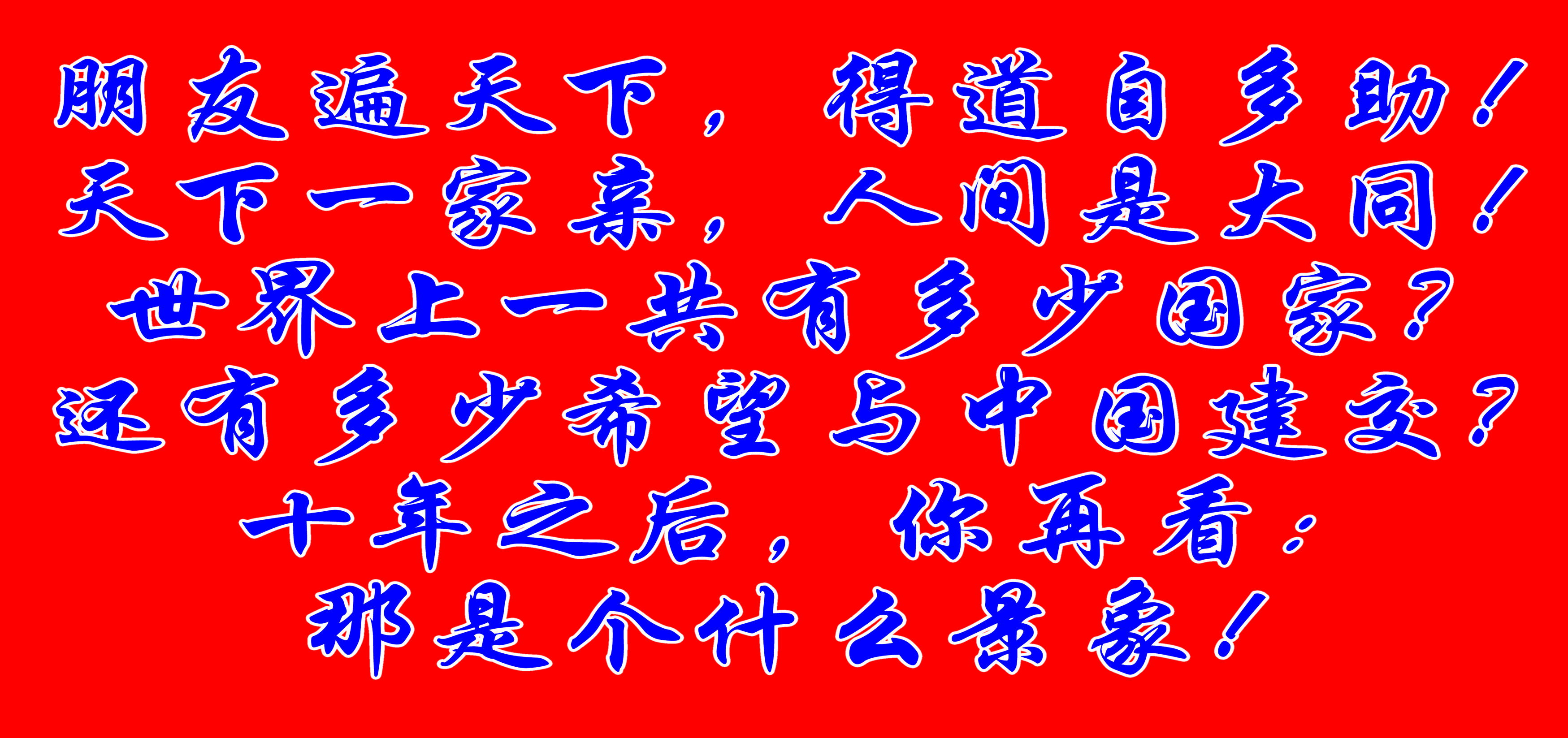 朋友遍天下,得道自多助!天下一家亲,人间是大同!