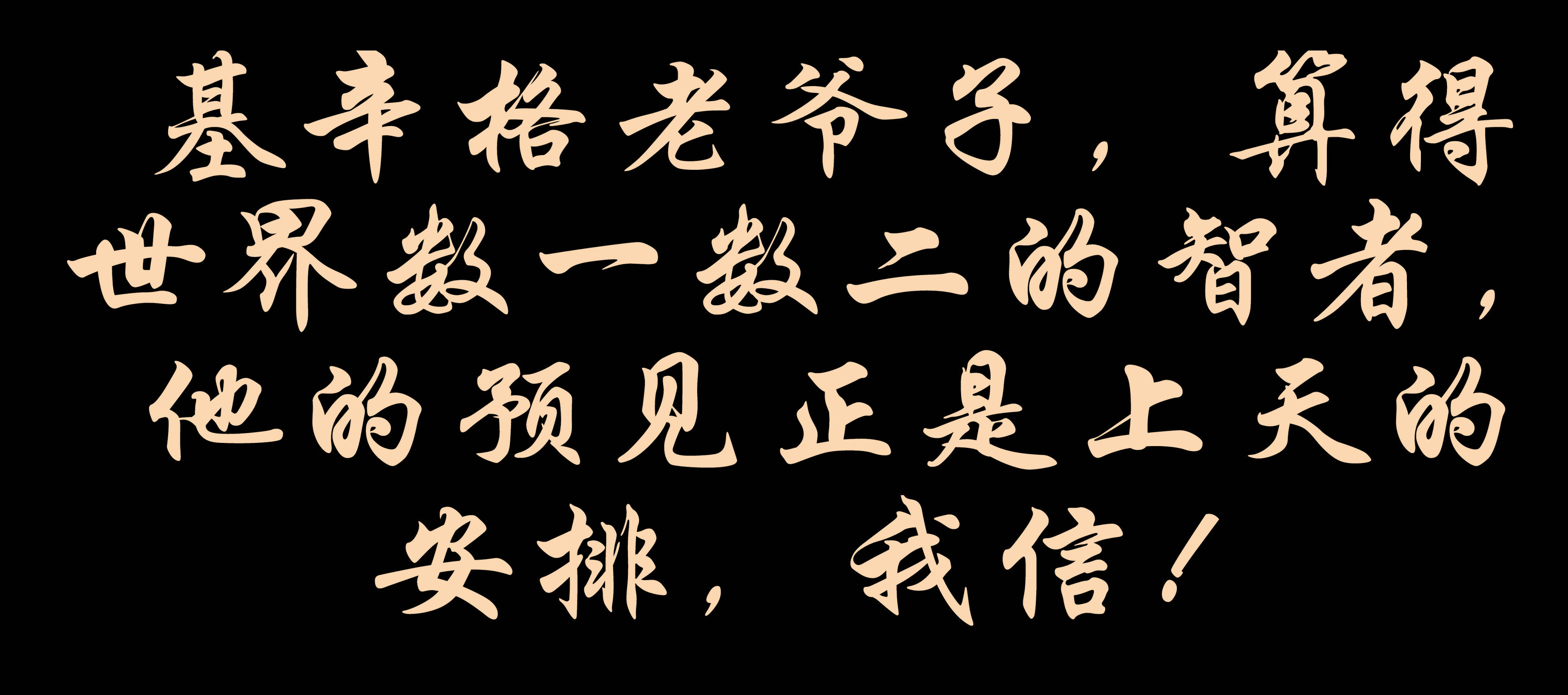 基辛格老爷子,算得世界数一数二的智者,他的预见正是上天的安排,我信!