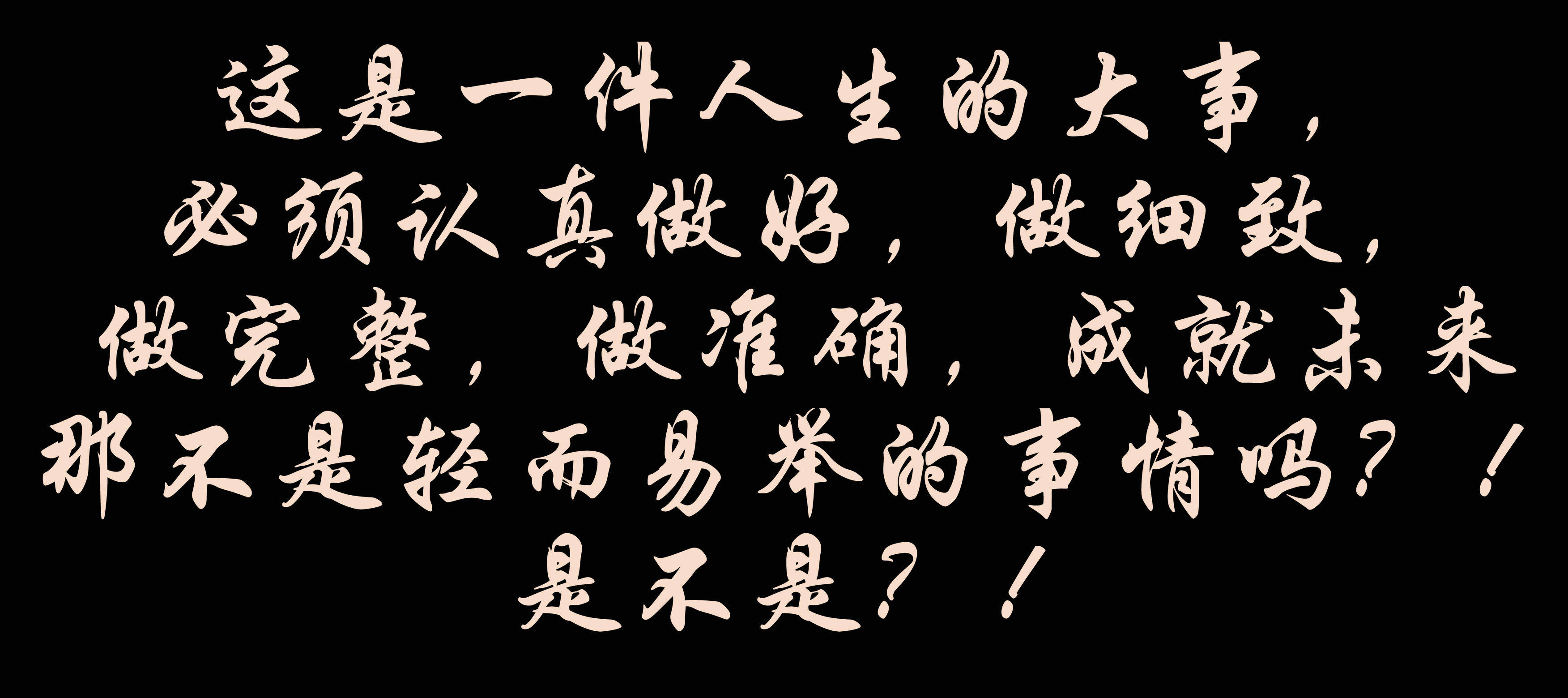 这是一件人生的大事,必须认真做好,做细致,做完整,做准确,成就未来那不是轻而易举的事情吗?!