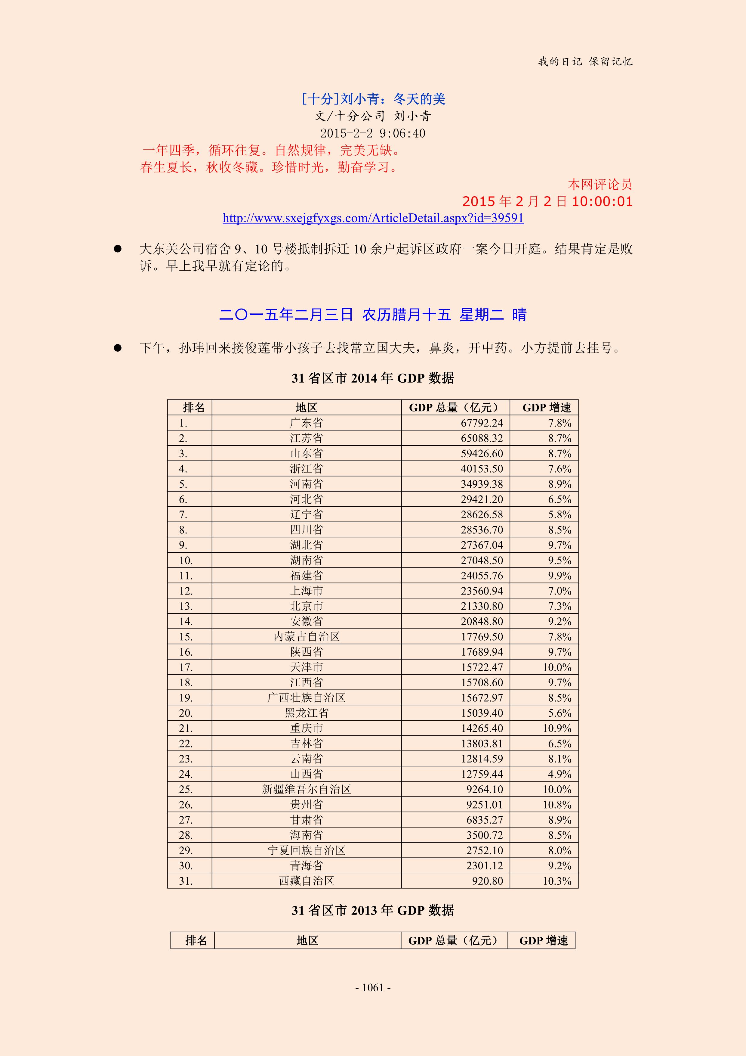 下面四页《我的日记·保留记忆》,记录了2015年1月31日至2月4日五天活动的内容。如果没有日记,那就是记忆的空白了!