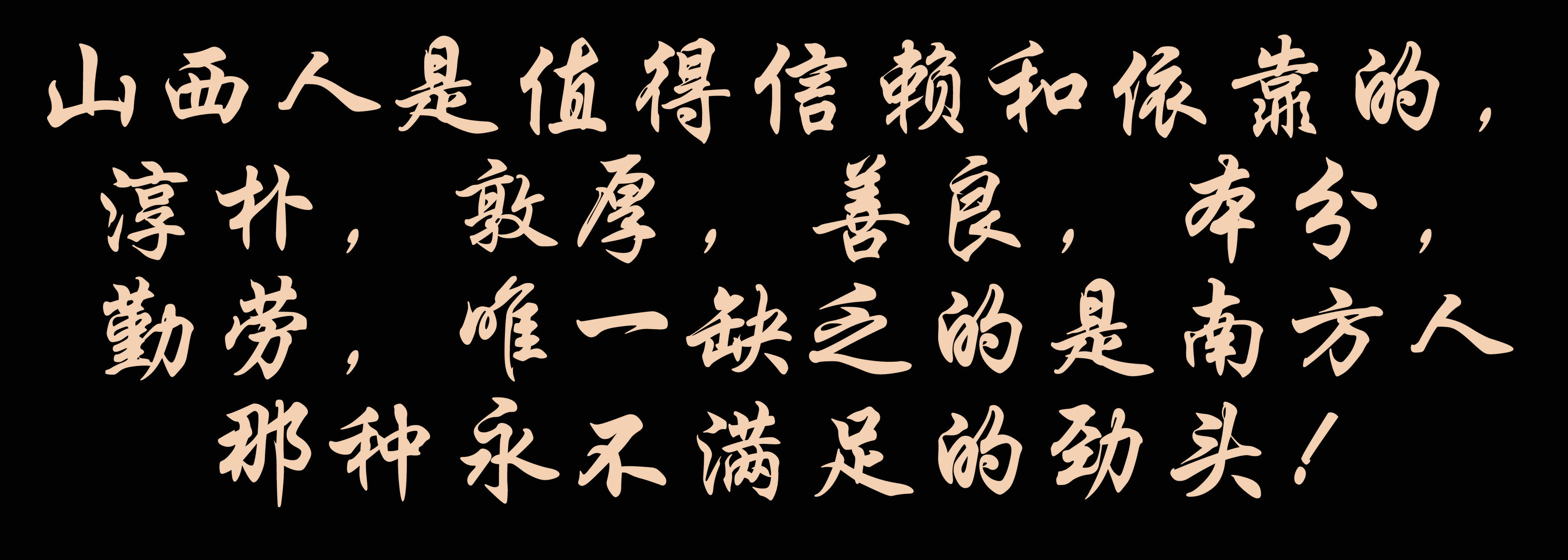 山西人是值得信赖和依靠的,淳朴,敦厚,善良,本分,勤劳,唯一缺乏的是南方人那种永不满足的劲头!