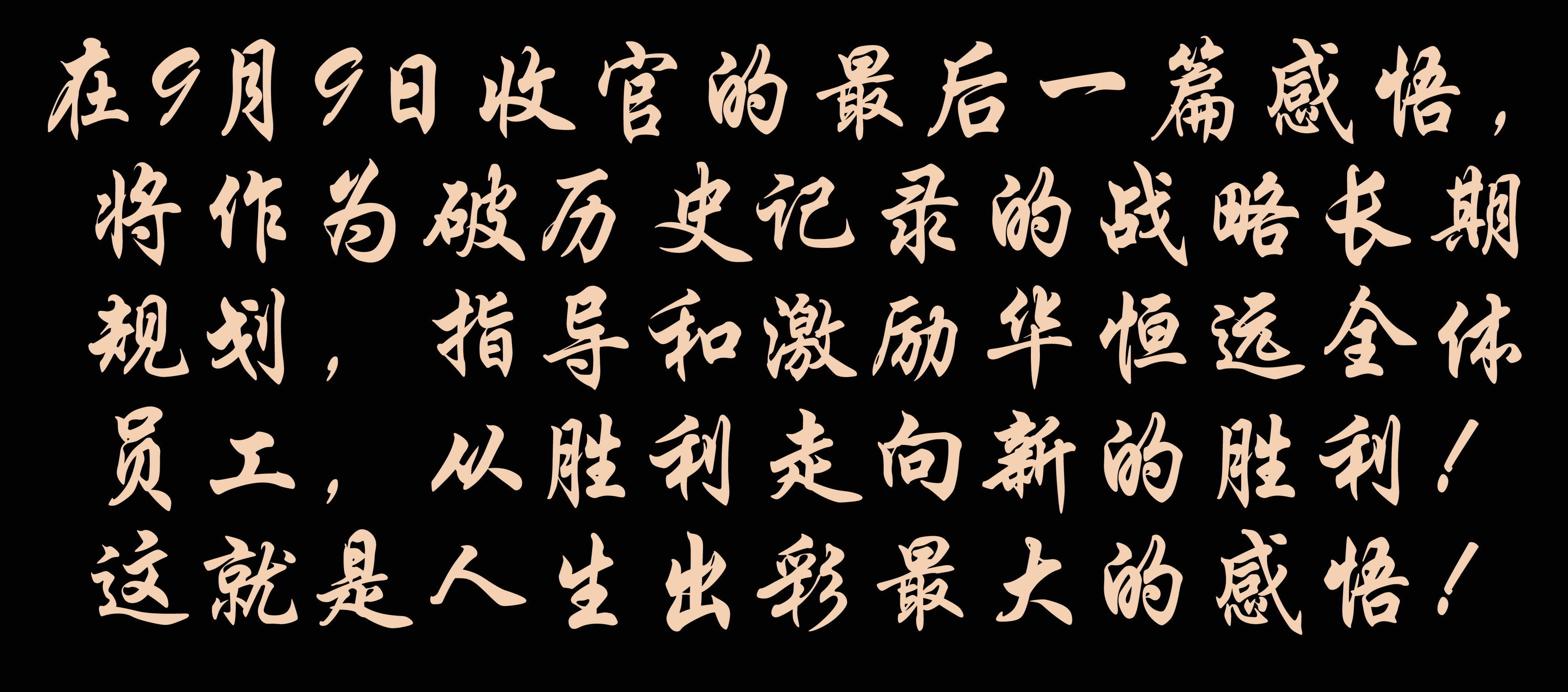 再有10篇就圆满完成500篇了,在9月9日收官的最后一篇感悟,将作为破历史记录的战略长期规划,指导和激励k1体育全体员工,从胜利走向新的胜利!