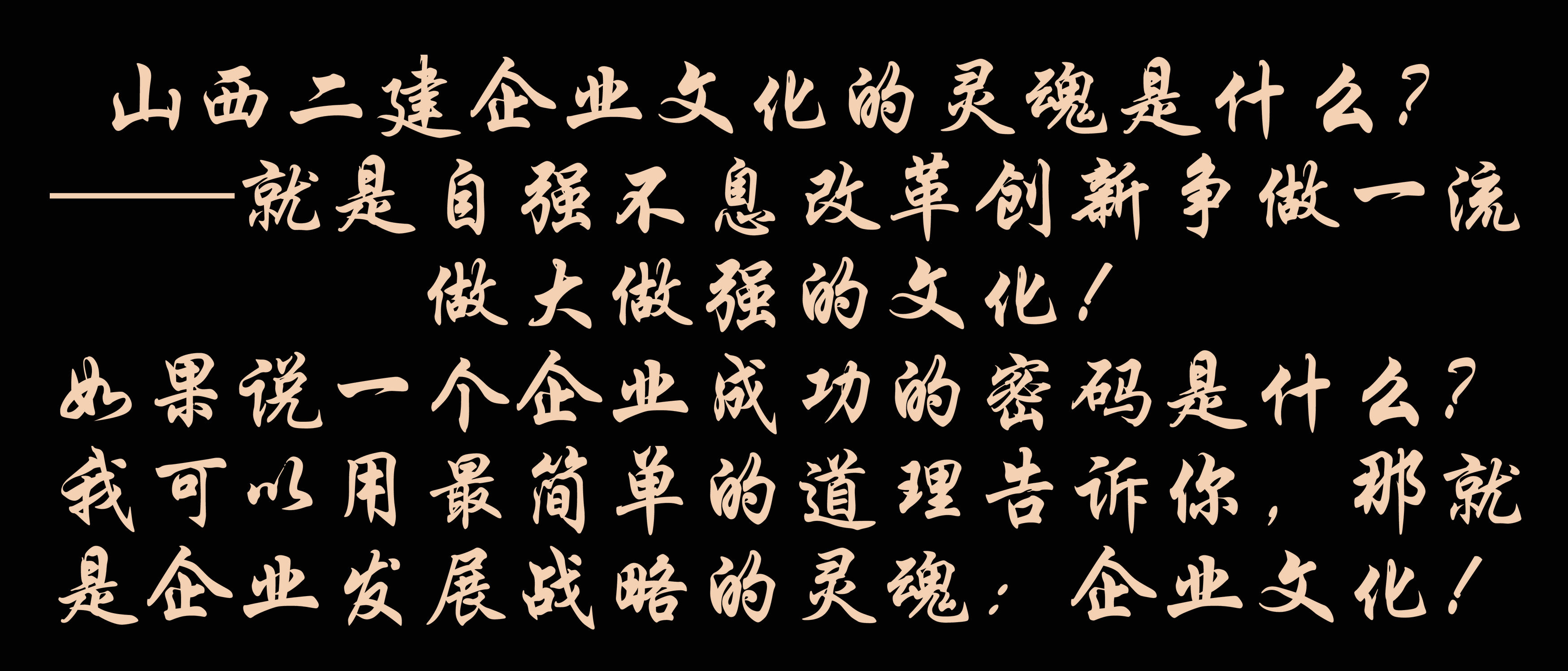 山西二建企业文化的灵魂是什么?——就是自强不息改革创新争做一流做大做强的文化!