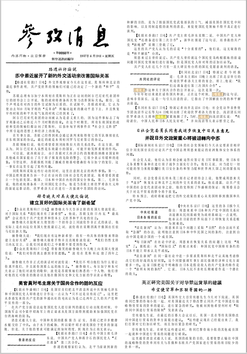 同时,外务省人士对毛主席的建议(指签订中日互不侵犯条约——编者注)不予考虑。