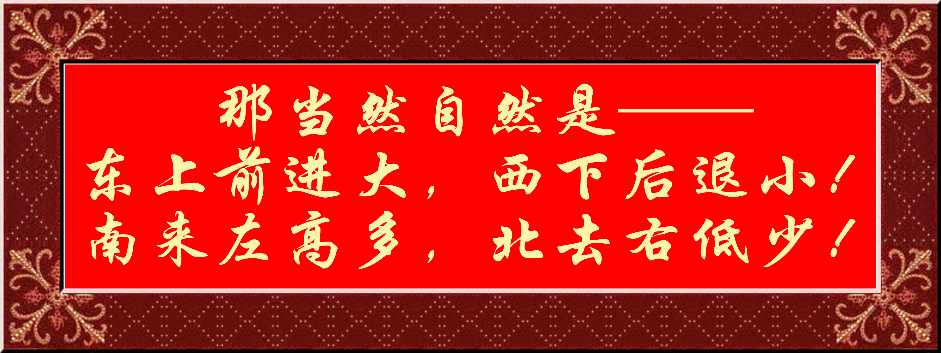 那当然自然是——东上前进大,西下后退小!南来左高多,北去右低少!