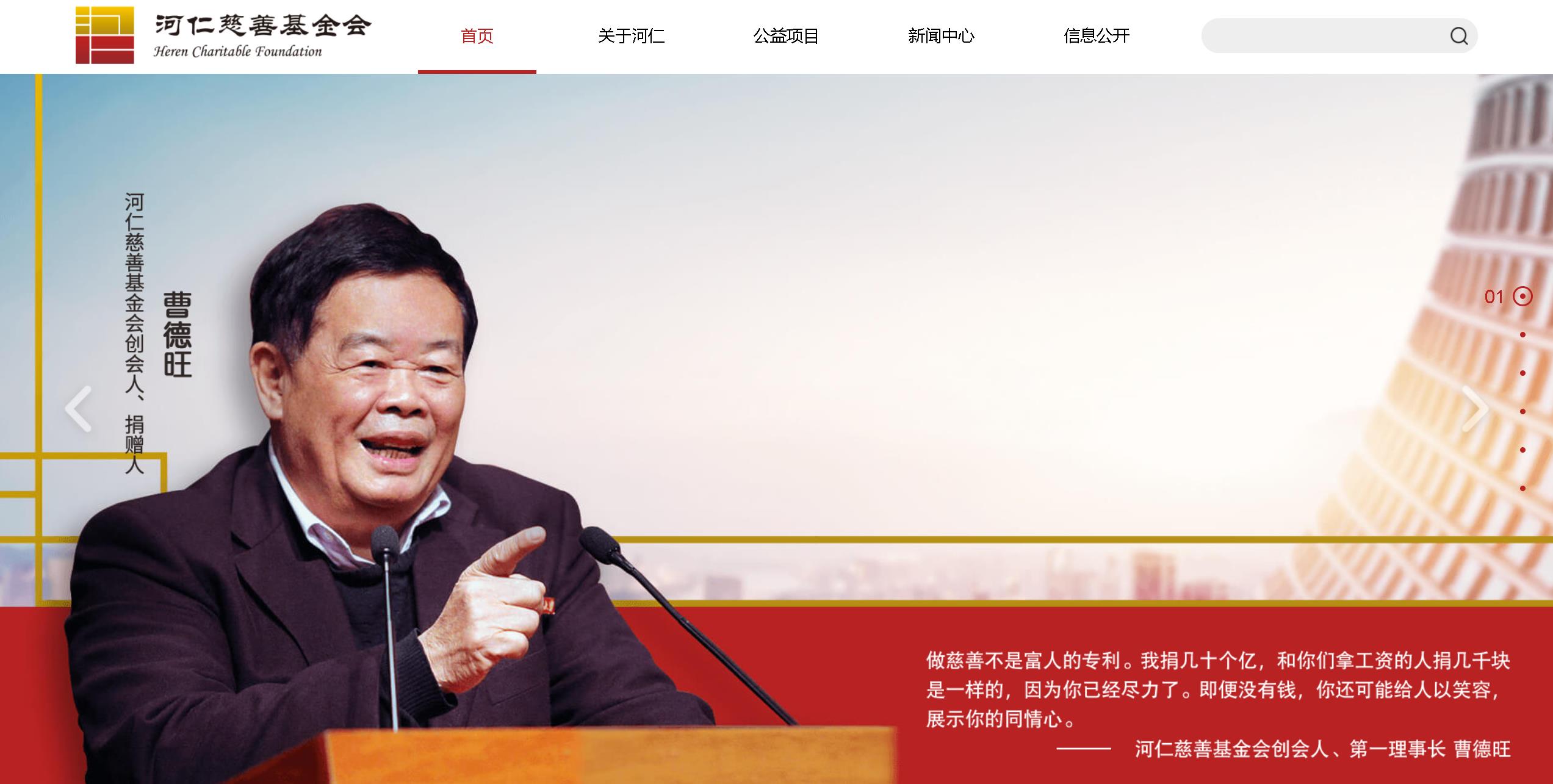 河仁慈善基金会网站介绍:河仁慈善基金会是由福耀玻璃工业集团股份有限公司董事局主席曹德旺先生捐资创立。