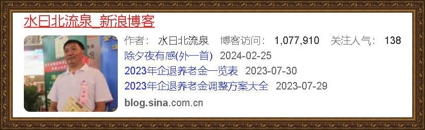 水曰北流泉:上海女婿四十年,知青老婆近衰年。晨练信步一万米,立马吟就五言诗。西北汉子势不减,读书万卷学有止?