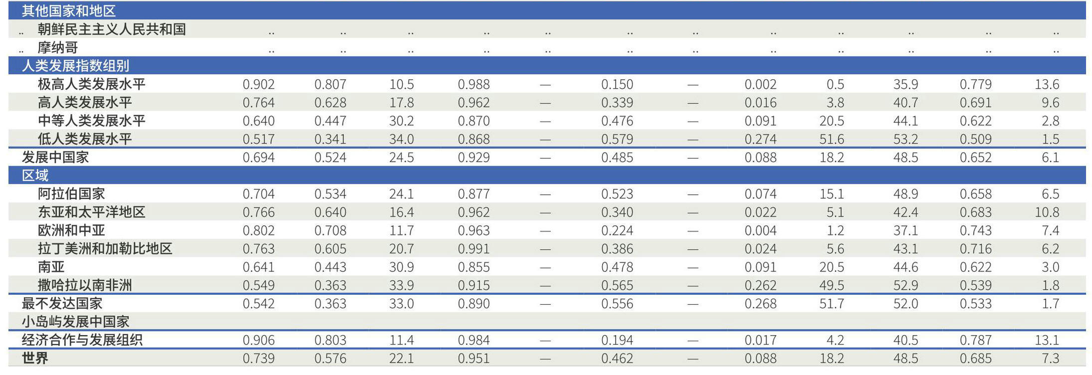 等级 国家或地区 人的发展指数 与2021年相比的变化